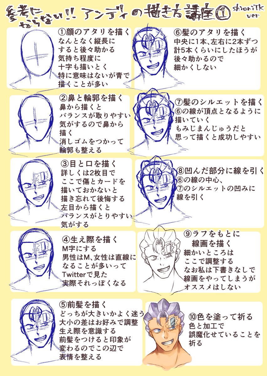 タグお借りしてあんまり参考にならないアンディ講座してみました 3・4枚目はこんな感じのノリで描いた過去絵のアンディです~~ 書き忘れてますが上唇の線を太く描くのも意識してます 好きなので #私がアンデラのアンディ描くときのコツ