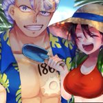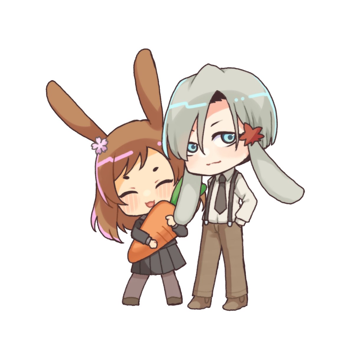 【#撲殺ピンク/綾知春・夏八木楓】 山本先生に送らせていただいたVtプレゼント用アクキーイラストでした!! 今年だけは知春くんにうさ耳付けるのが許されると聞いて…… 一枚目、実は楓ちゃんはサスペンダーつけてます