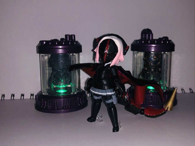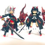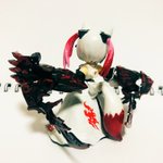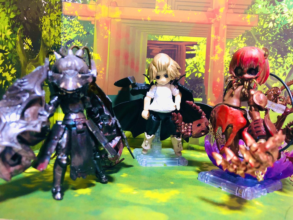 デスクトップアーミーと紡ぎ箱の融合第4弾‼️ ピトさんのクールさとアデラの禍々しい翼等がいい感じになったんじゃないかな? 色はプトゥンイメージで緑にしたけど、やっぱ赤も見てみたいから塗り直すか🤔悩ましい #デスクトップアーミー #紡ぎ箱