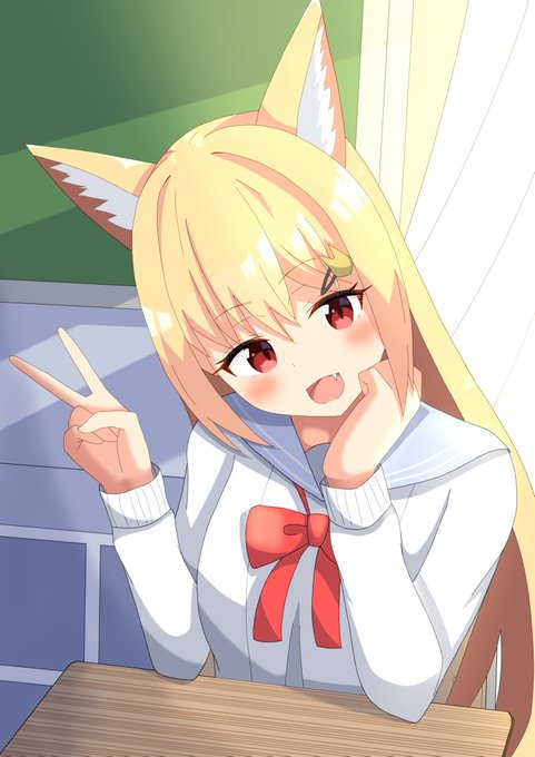 化け狐の幼馴染と教室 #オリジナル #絵描きさんと繋がりたい