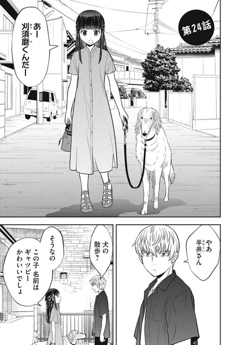 火曜はカノボク更新日! 犬と対面した時の刈須磨くんの第一印象が、狂ってると編集のツボに入った一話です 半井さんと犬の散歩の回! カノジョは絶対、ボクのこと好きなはず - 白井三二朗 / 第24話 | コミックDAYS comic-days.com/episode/326975…