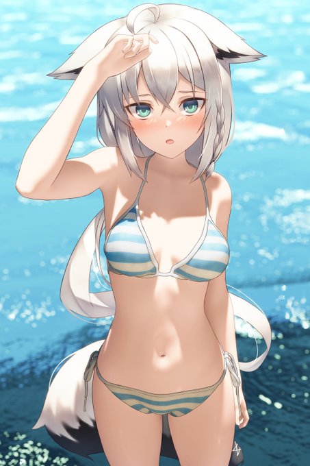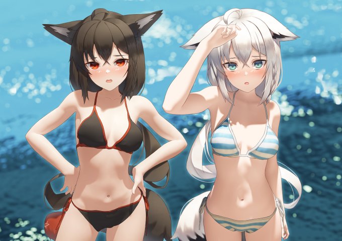 白上と泳ぎますよね!? 私と泳ぐよな!? #絵フブキ