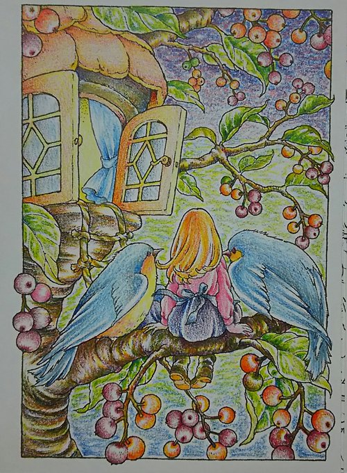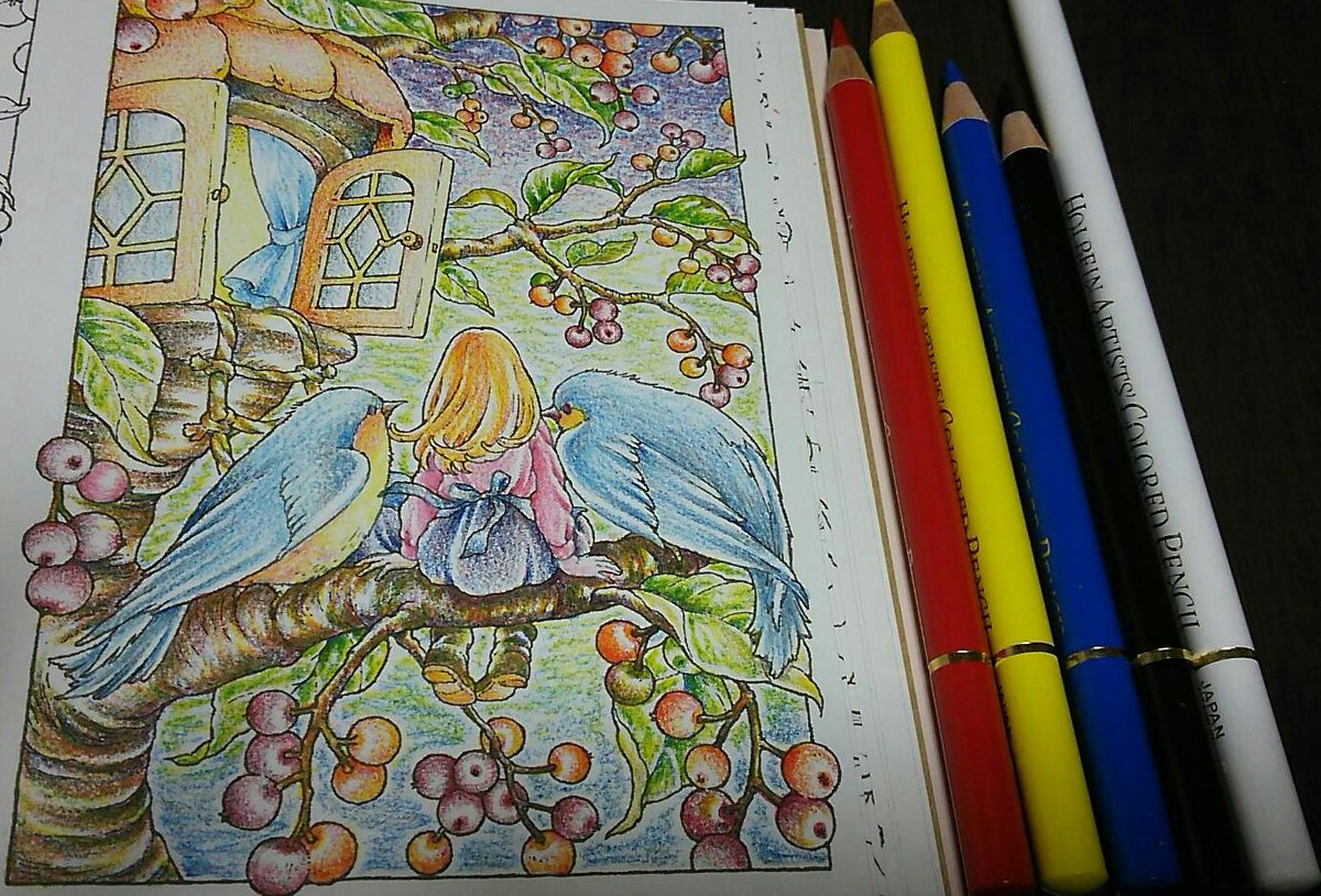 思い通りの色になったりならなかったり。とても楽しかった! #井田千秋 #森の少女の物語 #大人の塗り絵 #色鉛筆