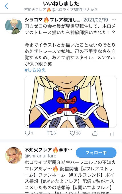 …初めて取り組んだへたっぴなイラストに、フレア様がイイネして下さってた。 嬉しすぎてマジで震えてる。憧れの方からのイイネほんま嬉しいし、やっぱフレア様めちゃくちゃ優しくて、そういうとこが本当に好き。 エルフレ最高。😭生きてて良かった。もっと頑張ろう! #しらぬえ #エルフレンド