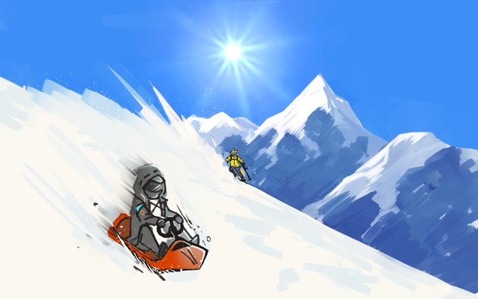 風雪一過読んだらソリで遊ぶ博描きたくなったの 奥にいるのはムリおじ
