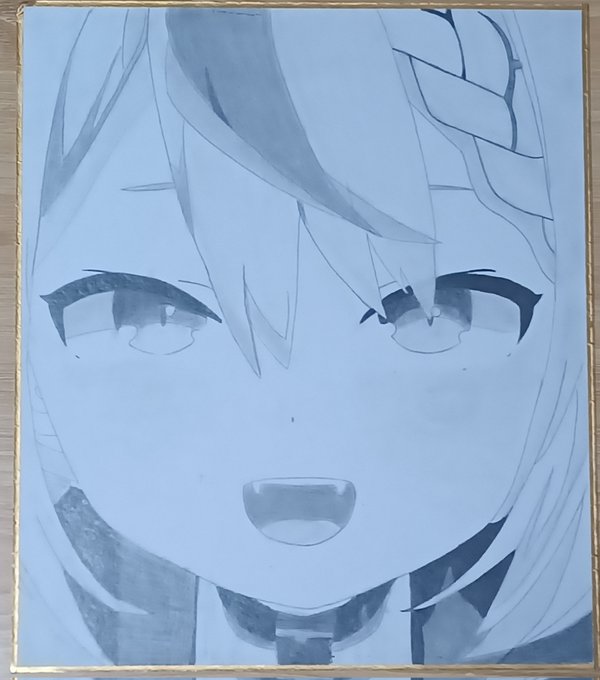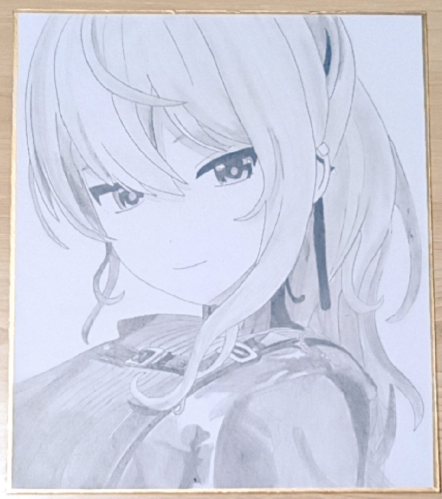 #ほしまちぎゃらりー #星街すいせい #鉛筆画 THE FIRST TAKEみちづれのすいちゃんを色紙に描きました!