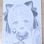 #ほしまちぎゃらりー #星街すいせい #鉛筆画 やっぱり猫耳衣装最高だと思うんだよね