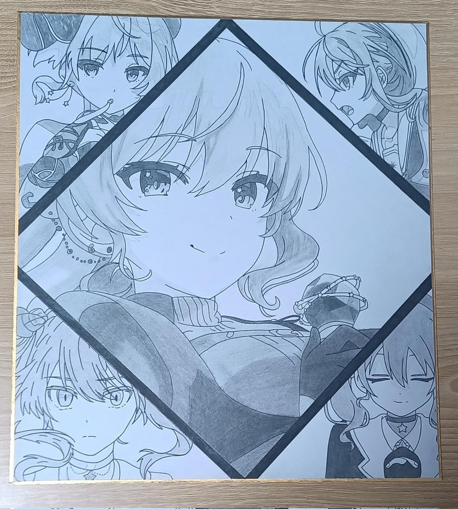 49 229 #ほしまちぎゃらりー #星街すいせい #鉛筆画 THE FIRST TAKEのstellar stellarのすいちゃんを色紙に書きました! 23/02/05 22:00