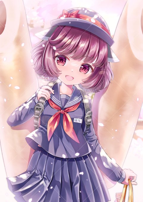 スタンプラリー期間中最後の #きりたんキラキラ金曜日 改めまして朝文堂さんのパネルを担当しました! ・昭和セーラー服で聖子ちゃんカット風 ・ランドセルのベルトや手提げ袋まで細部の質感にこだわりました ・グッズも販売中 よろしくお願いいたします☺️ #ずん子スタンプラリー #東北きりたん