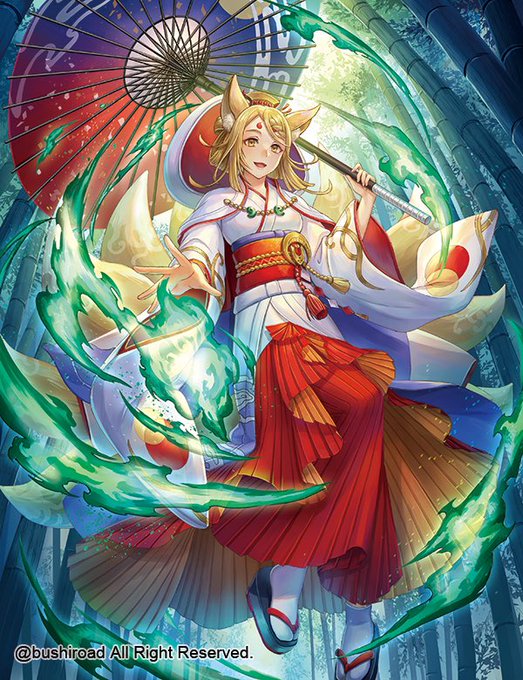本日6/2発売のカードファイト!!ヴァンガード ブースターパック11弾「英雄激突」にて 「狐火払暁 タマユラ」担当させて頂きました! よろしくお願いします!🦊 cf-vanguard.com/tcg/ #ヴァンガード #cf_vanguard #英雄激突