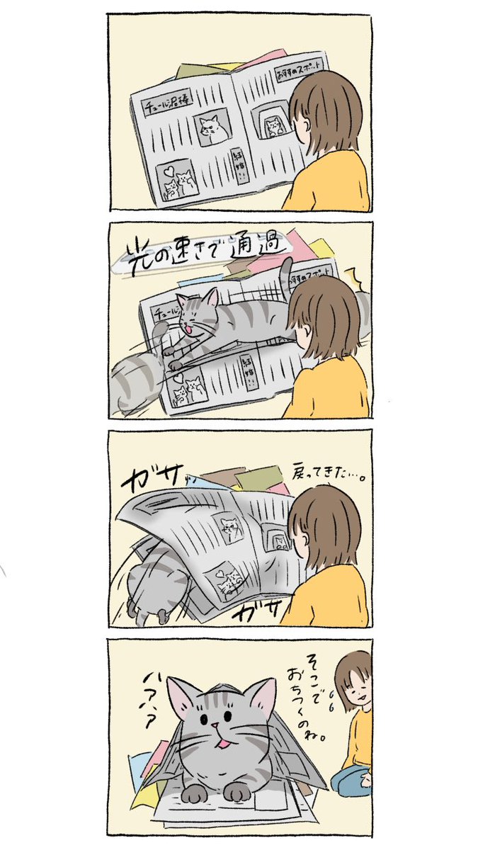 2 26 19話 新聞は隠れる場所 #イラスト #イラスト練習 #4コマ漫画 #猫 #ねこ #猫好きさんと繋がりたい #猫のいる暮らし 23/01/20 15:46