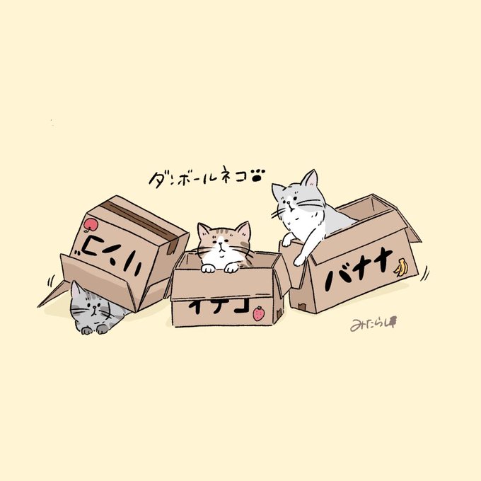 段ボールとねこ🐈🐈🐈 #イラスト #猫 #ねこ #猫のいる暮らし #猫好きさんと繋がりたい