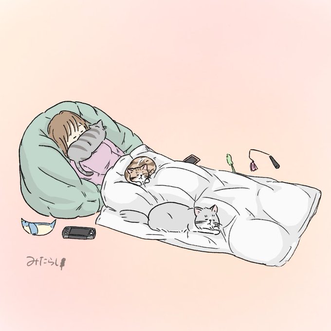 寒い日は猫で温まる🐈🐈🐈 #イラスト #イラスト依頼 #猫 #ねこ #猫のいる暮らし #猫好きさんと繋がりたい