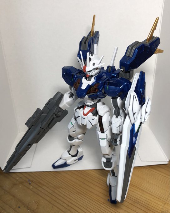 ベギルペンデ完成!! 艶消しと一部凹をゴールドでアレンジしました。 量産機とは思えんかっこよさで、特にノンキネティックシールドはギミック含めて最高です。 #ガンプラの画像を貼るとRTされると聞いて #水星の魔女 #G_Witch