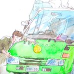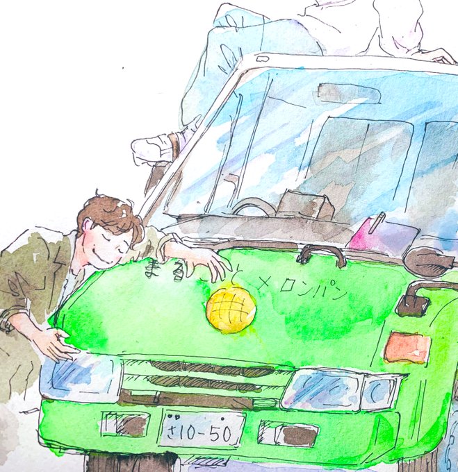 感謝を伝えようと思って急ぎ描いてみたら、ただの小学生の絵になってもうた。 適当すぎた…ごめん、最後なのに。 二年間走り続けてくれてありがとう!!メロンパン号✨✨ 一区切りするようで、ほんと寂しい! また逢う日まで! #MIU404 #メロンパン号キャラバン #ラストキャラバン