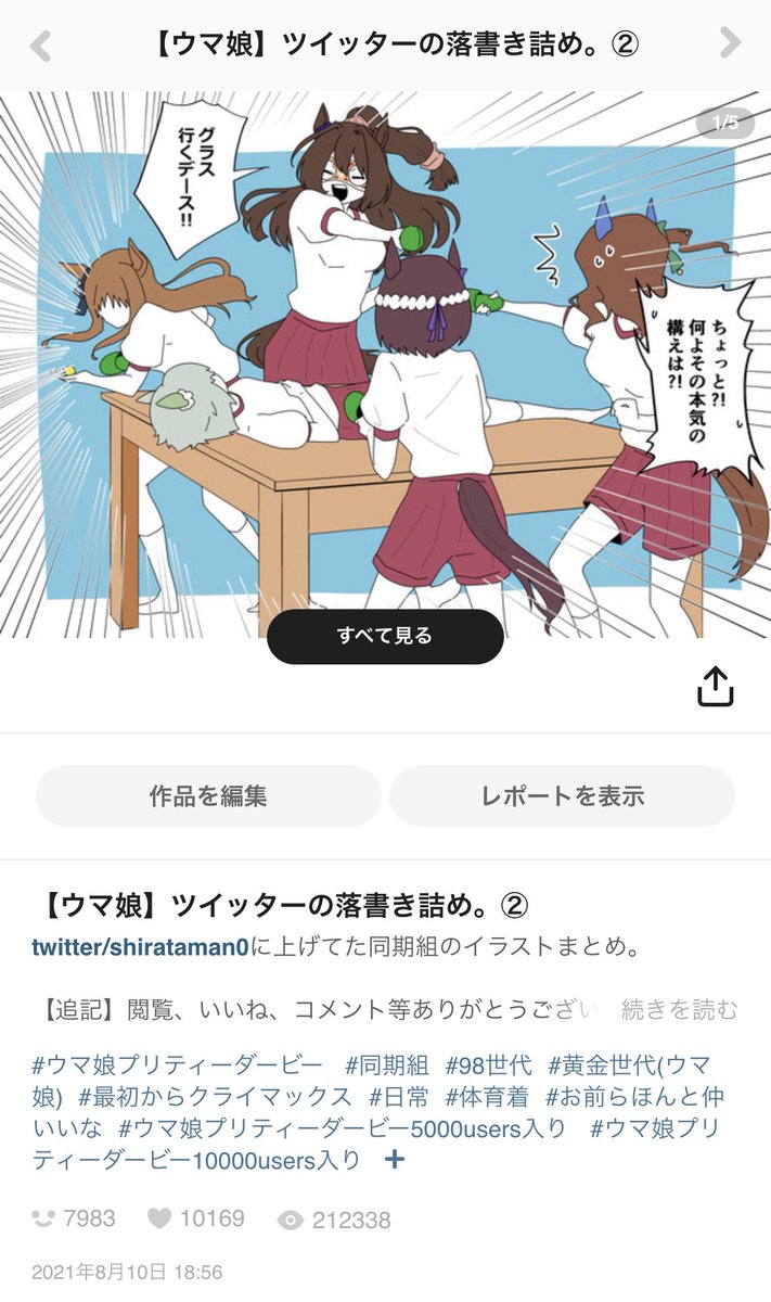 1325 9844 pixivのタグ欄見るの楽しいから自分で設定するのはウマ娘と同期組だけにしてるんですが、「おまえらほんと仲良いな」がほぼ毎回付いててちょっと嬉しい☺️☺️ あと1万いいねありがとうございます🙏✨ 22/04/13 20:50