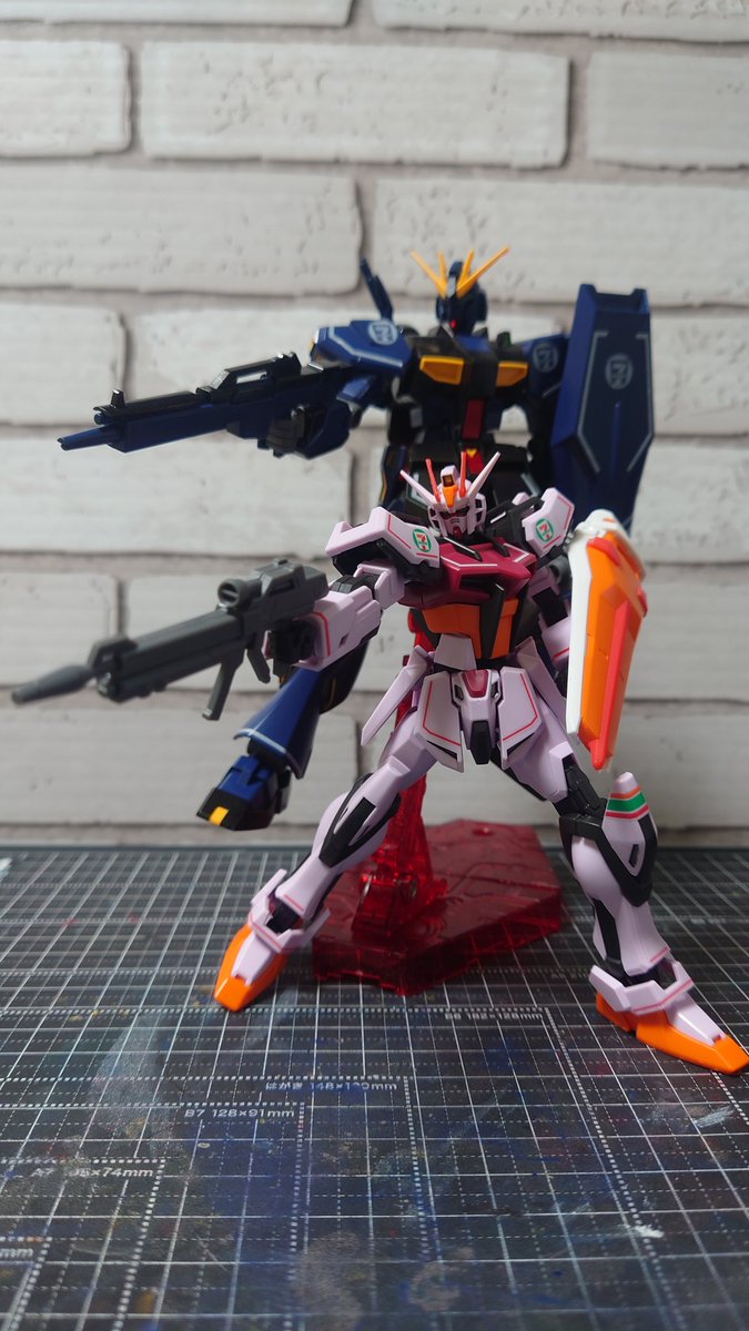 まだ買えるようだったのでセブンイレブン限定ストライクも買いました。 んで、そのまま組むのも芸が無いのでルージュとミキシングして私のイメージするセブンのユニフォームに寄せてみました😆✨ #ガンプラ #ガンプラ好きと繋がりたい #ガンプラの画像貼るとRTされると聞いて