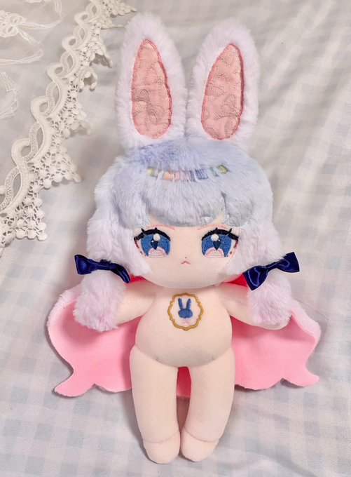 24 126 完成しました!友人の子、ななせちゃんです!🐰🩷 いたずらっぽい表情がとびきり可愛く刺せました〜!配信でお見せした胸の刺繍もばっちり仕上がってます🌟 後付けのハーフツインとアホ毛も上手くいったので、今後のぬい作りにも活かせそうです👌 #自作ぬい 23/04/30 21:33