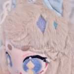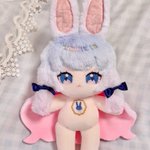 完成しました!友人の子、オガオメガ(女)ちゃんです!🐰🎀 水色からピンクのグラデーションの髪、ゲーミングハイライト、ぴんと立ったうさみみ…再現に時間を要しましたが、メチャクチャ可愛くなりました🥹💕 #自作ぬい #オガオメ画