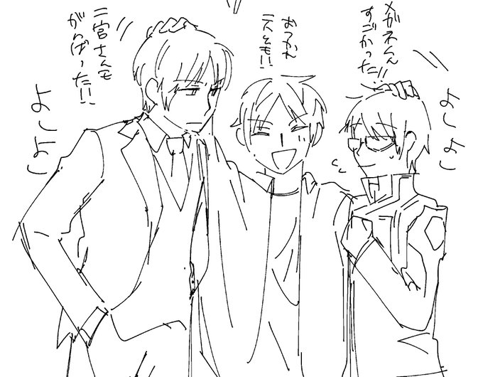 8 36 お題 修と二宮さんのダブル弟子にお疲れ様よしよしする出水先輩 動画色塗りするの疲れてた時に描きました まずこのお題めちゃくちゃ可愛いね……!??!! 20/05/12 00:36