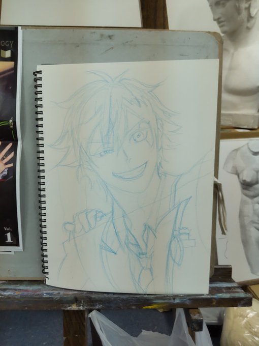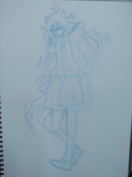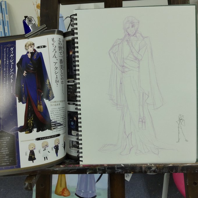 #絵のレッスン #模写 #ツイステファンアート #ヴィル・シェーンハイト 難しいモデルを選んでしまいました。体のラインがわかりづらい服着てるのに、しっかりモデル筋肉使ってます。制服姿と見比べて重心とかさぐったのですが、自信ないです。結局線画だけで終わってしまいました。