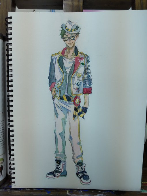 #絵の練習 #透明水彩 #模写 #ツイステファンアート #トレイ・クローバー 薄目で見ること推奨・拡大非推奨(笑)。スマホのカメラが色々補正してくれたことは内緒。本気で透明水彩使ったのは久しぶりで、楽しく描けました。