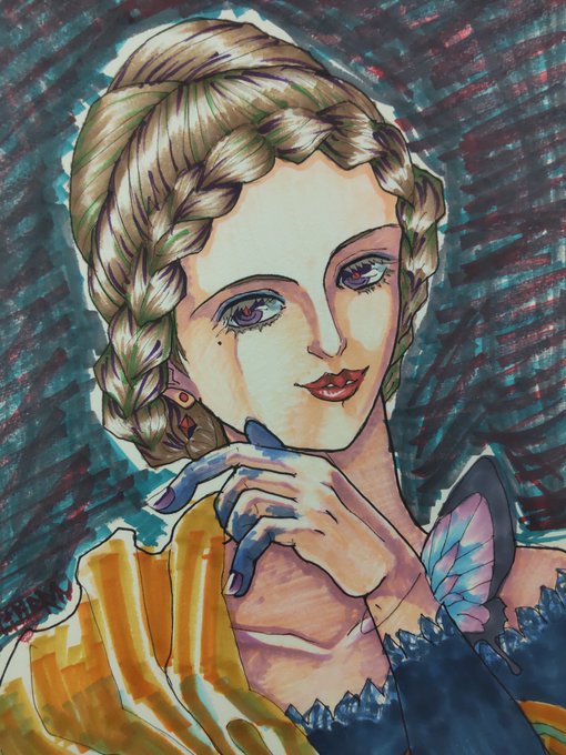 #絵の練習 #ツイステファンアート #模写 #つけペン #芸術 #アート #カリム・アルアジーム S字のムーブマンはどこに行ったのでショウ?となりましたがペン入れ完了!どうやって塗ろうかなぁ?