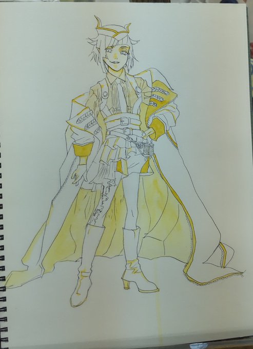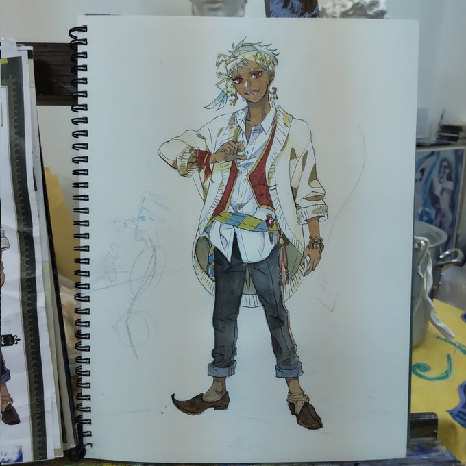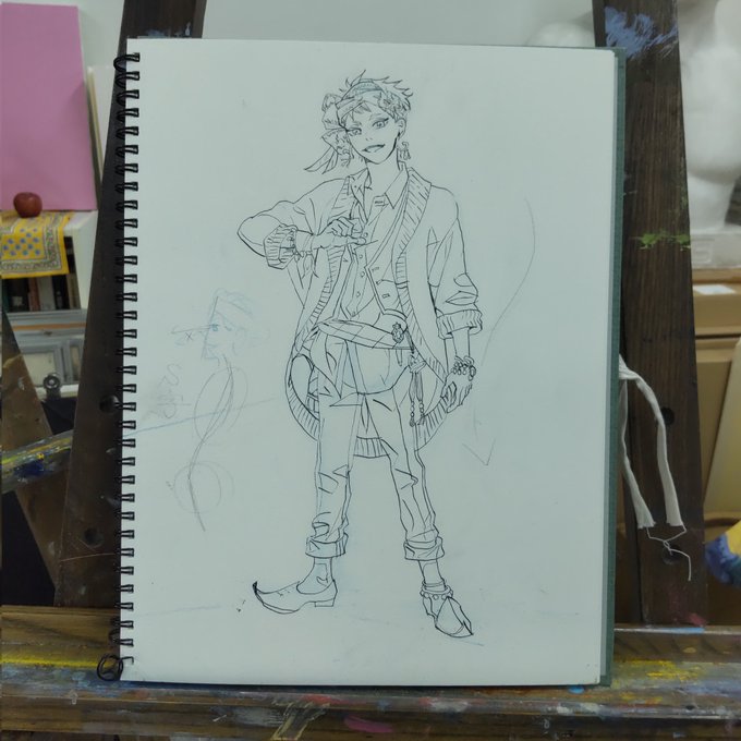 #ツイステファンアート #模写 #絵の練習 #アート #芸術 #イラスト #下書き #カリムアルアジーム 諦めてしまった箇所が何個かありますが、第2下書き開始。なかなか進まないです。もうちょっとS字を強調したい。