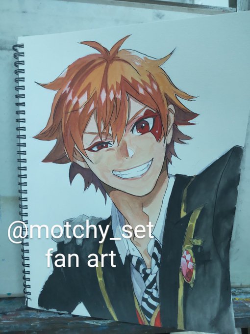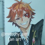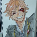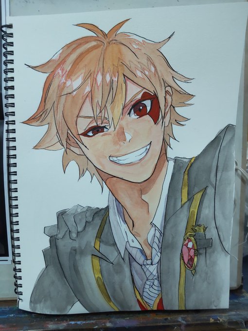 #ツイステファンアート #模写 #エース・トラッポラ 完成です。拭い切れない日向翔陽感。(汗) 描いてて思ったのは、エースの髪って結構赤茶色なんですね。 今回は肌で失敗した(黄色く塗ってしまった)ので調整してオレンジっぽいです。