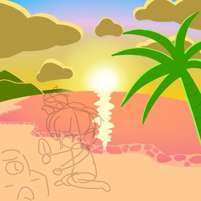24 68 ジャケット描き中… 慣れない背景に苦戦してます🌴 23/04/28 02:16