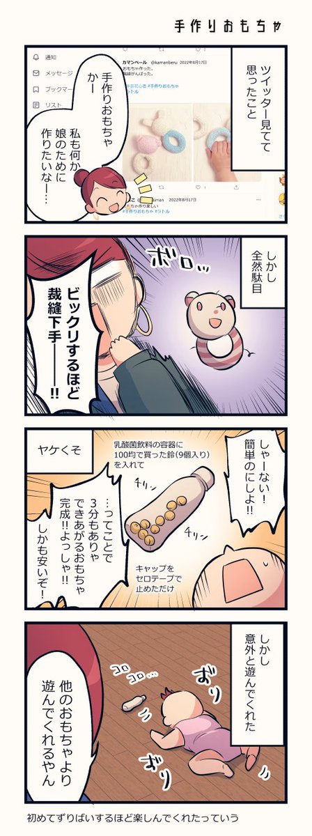 2 16 初めてベビー用おもちゃ作ったよっていう 4コマ漫画 #エッセイ漫画 #子育てママ #育児漫画 #漫画が読めるハッシュタグ 22/08/19 18:00