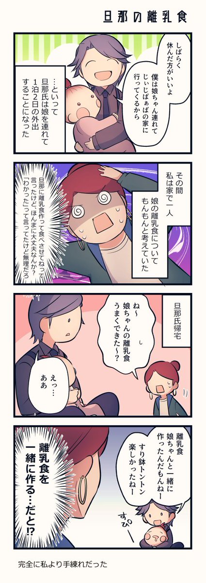 1 13 旦那が離乳食作ったっていう 4コマ漫画描いたよ #エッセイ漫画 #子育てママ #育児漫画 #漫画が読めるハッシュタグ 22/08/27 12:00