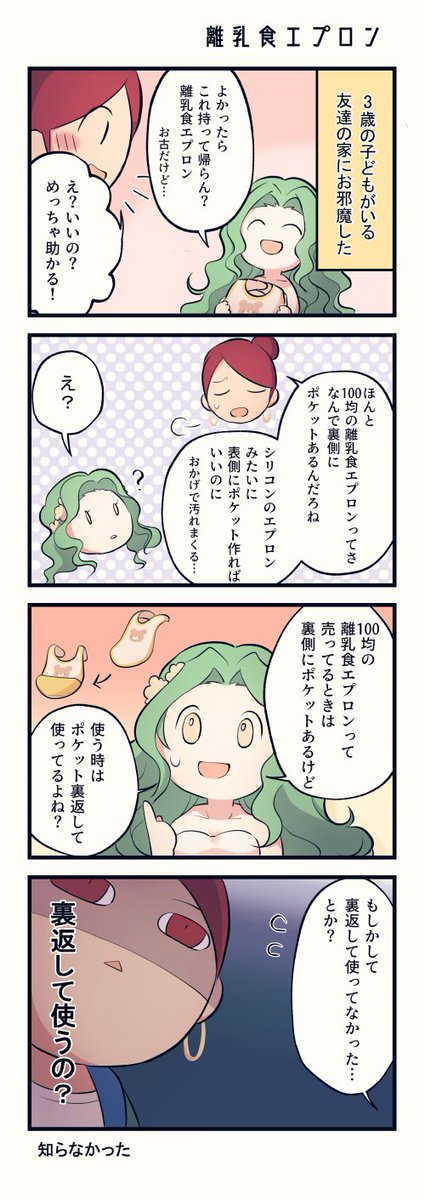 1 13 離乳食エプロンの使い方間違えてたっていう 4コマ漫画描いたよ #エッセイ漫画 #子育てママ #育児漫画 #漫画が読めるハッシュタグ 22/09/01 12:00