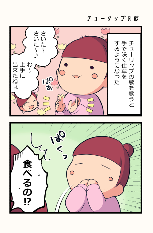 1 4 娘1才2ヶ月 さいた~さいた~♪ チューリップ~の~花~が~♪ #漫画が読めるハッシュタグ #育児漫画 23/05/03 12:00