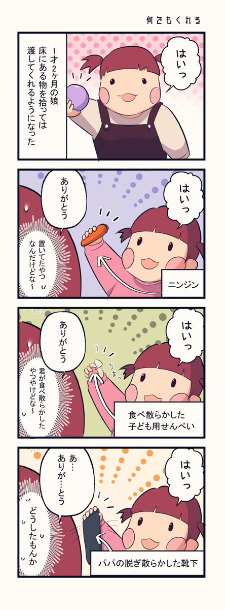娘1才2ヶ月 何でも渡してくれる #漫画が読めるハッシュタグ #育児漫画