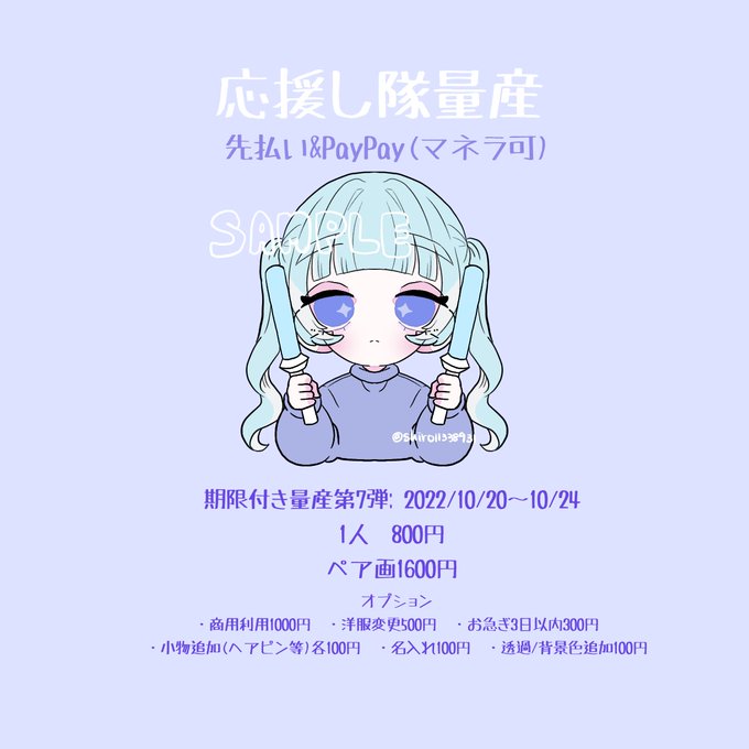 12 43 [期限付き量産第7弾] 応援し隊量産🪄 突然ですが24日までやります! テンプレ記入後DMにて🧸 #有償依頼 #イラスト #量産依頼 22/10/20 09:28