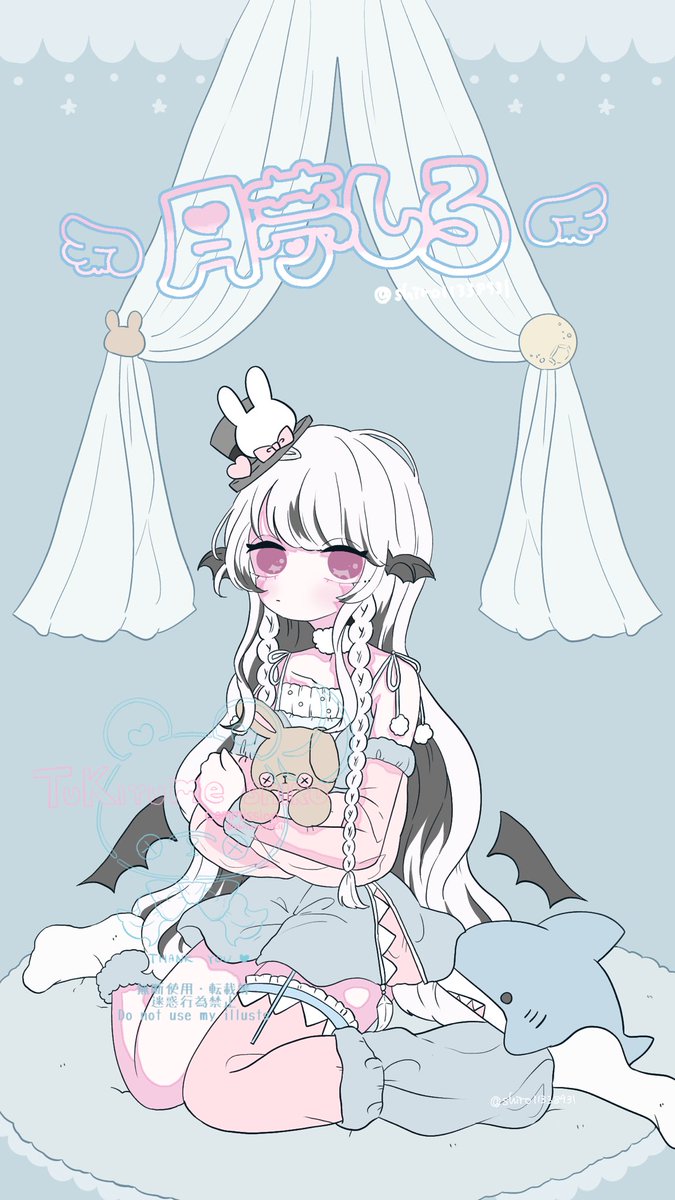 サメとうさぎイメージデザインお任せのロック画面用ご依頼でした🦈🐰 #しろぽんのこどもたち #イラスト #有償依頼