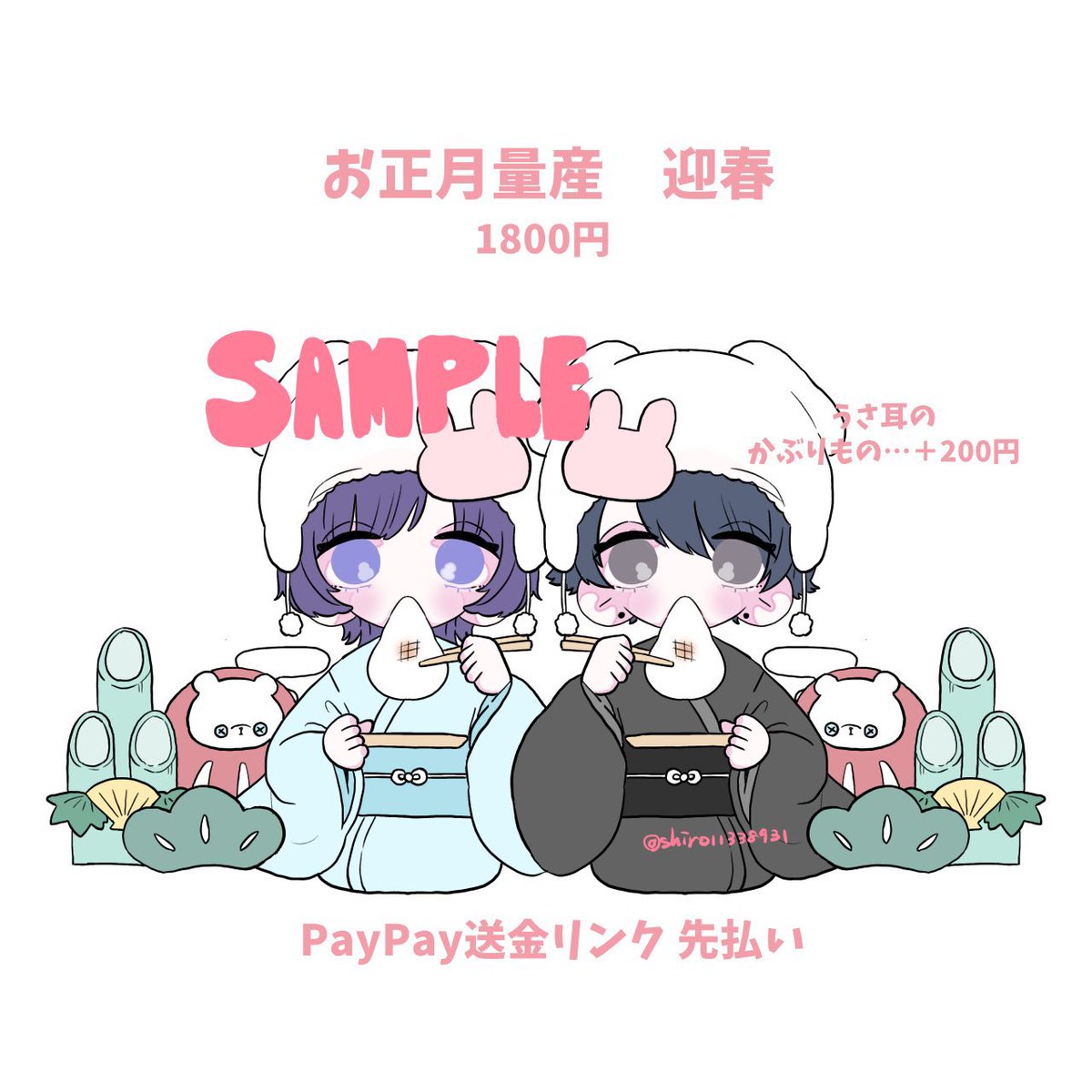 これもぼちぼち受け付けます! ペア画は無しですが単体なら人数制限ないのでお揃いとしてでもぜひ🧸 #有償依頼 #量産依頼 #イラスト #お正月 #着物