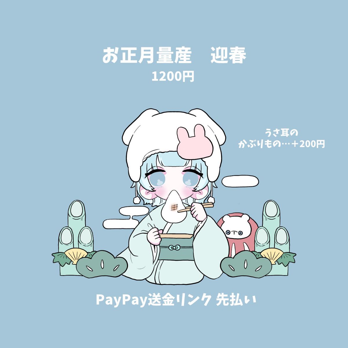 9 36 迎春12/29まで延期します! もし宜しければDMまで( ˶'꒳'˵ ) #有償依頼 #量産依頼 #お正月 #イラスト 22/12/26 15:52