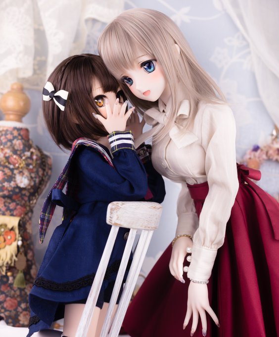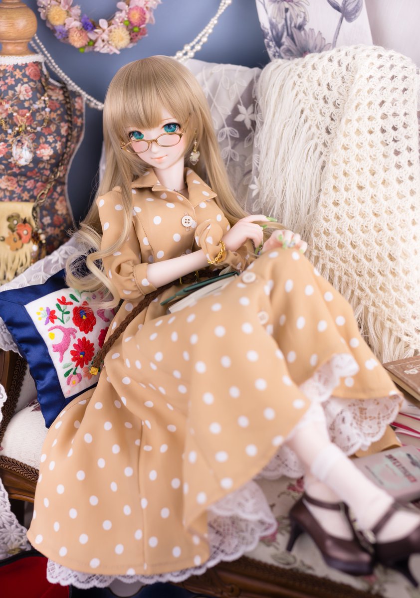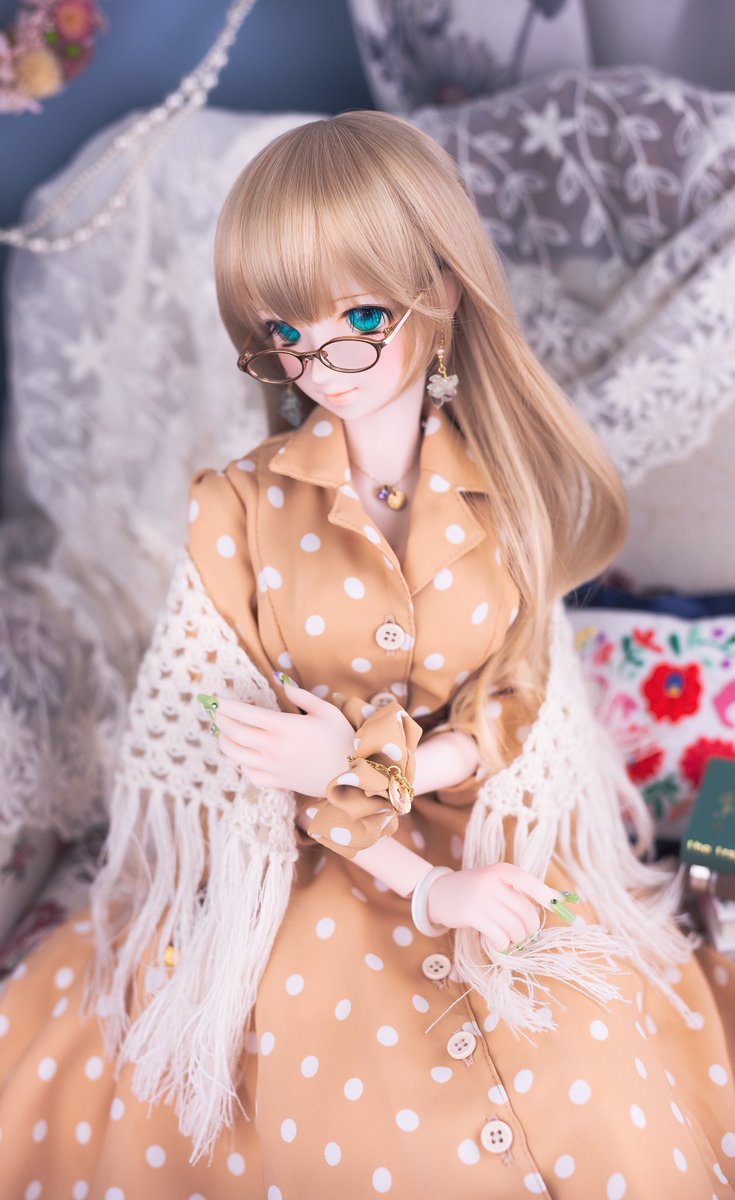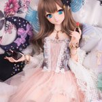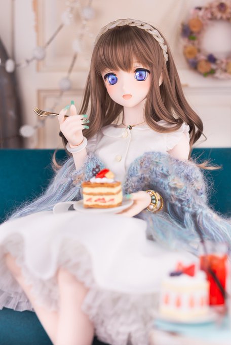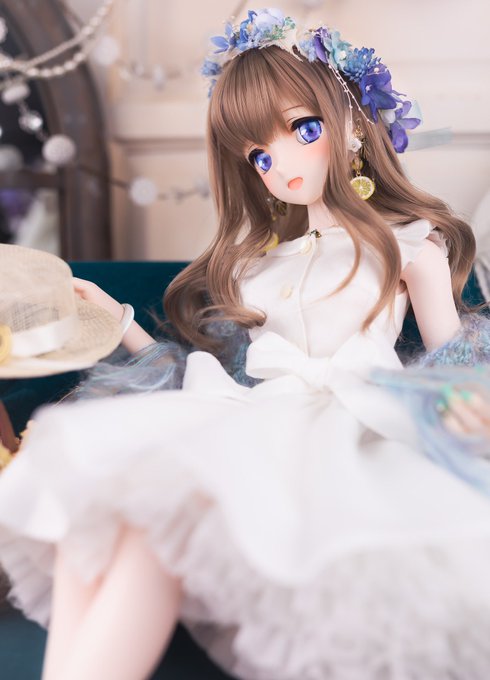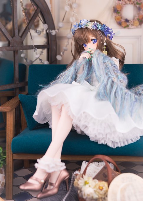 青の花冠のお姉さん〜🌸 白のブラウスとスカートは関口妙子様著Dollfie Dream® sewing bookの型紙から、裁縫得意な母が縫ってくれました😍 #dropparts #Kaleidoll #crystalof