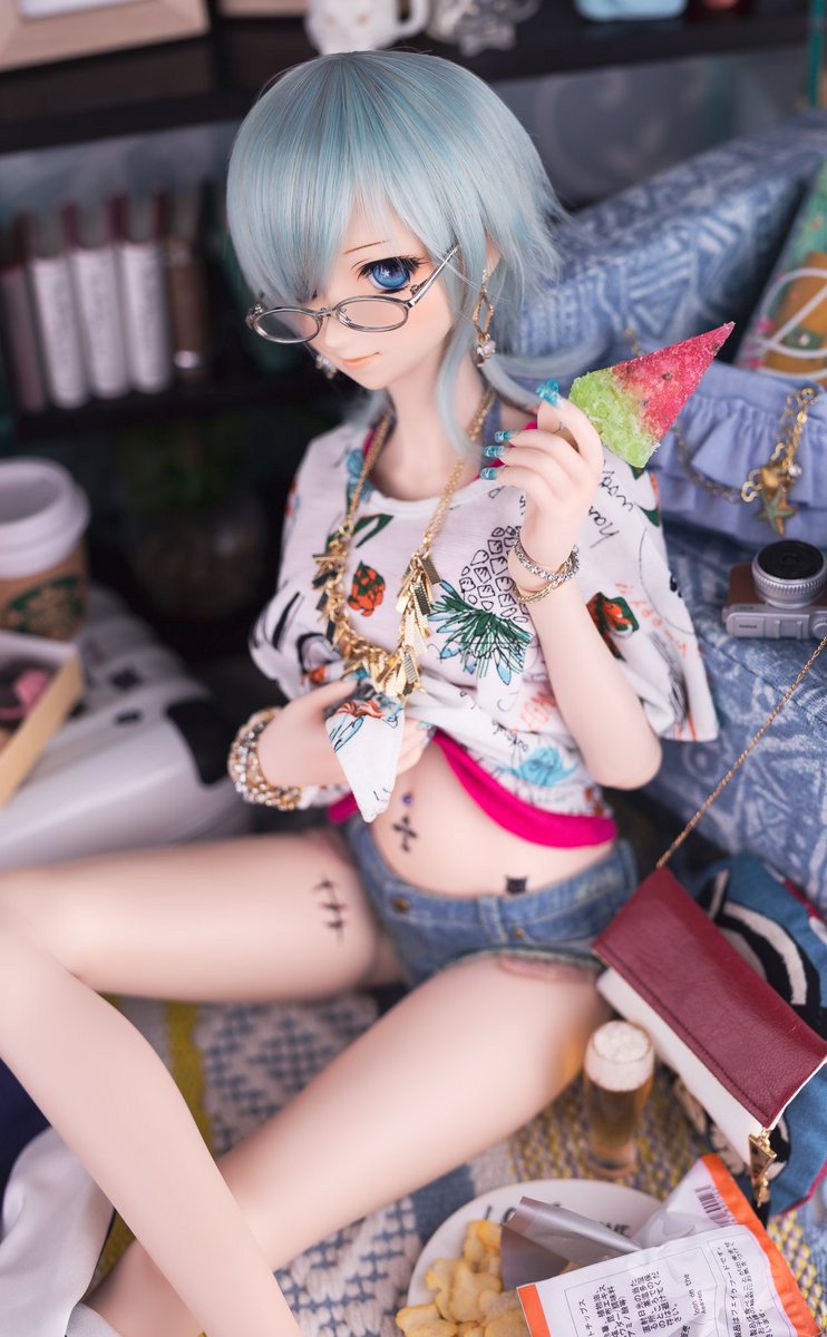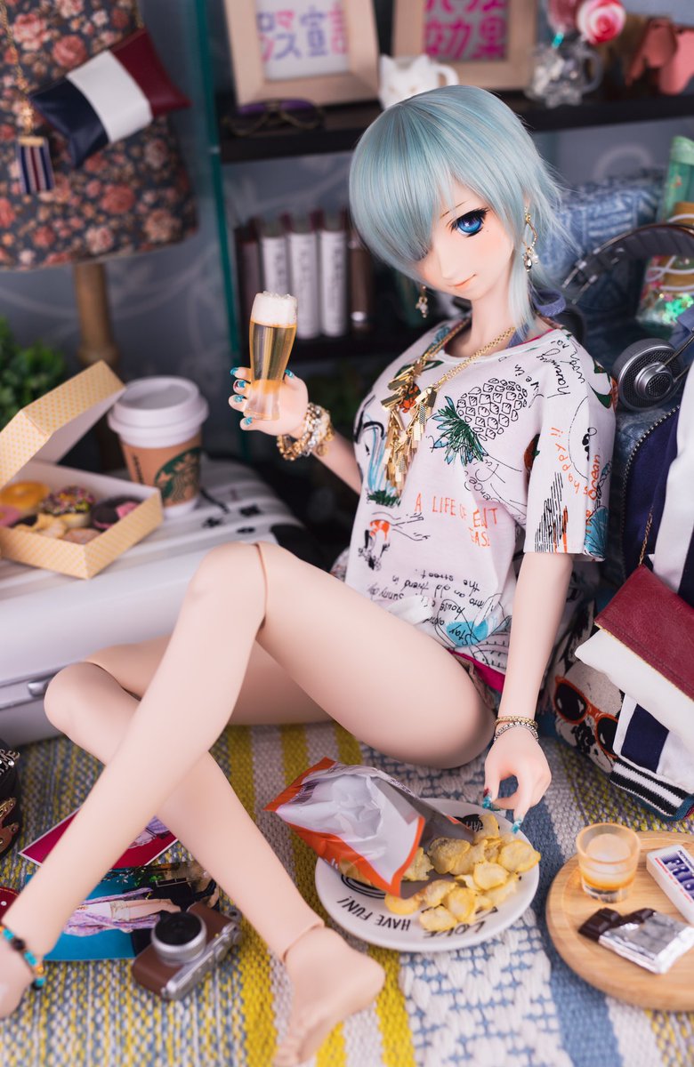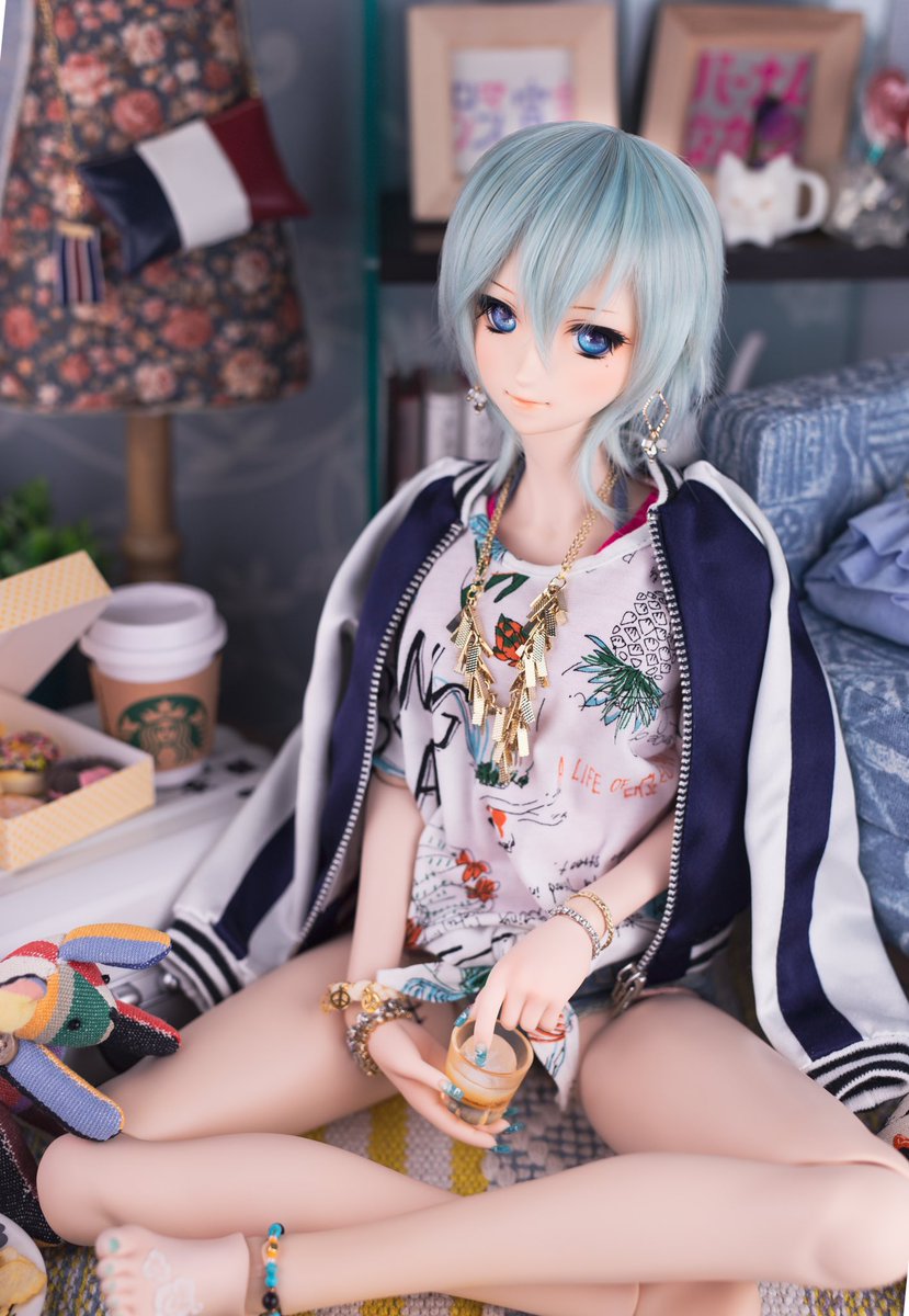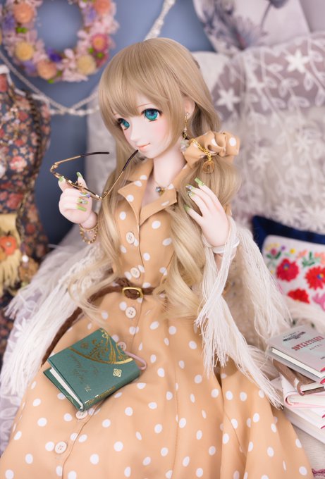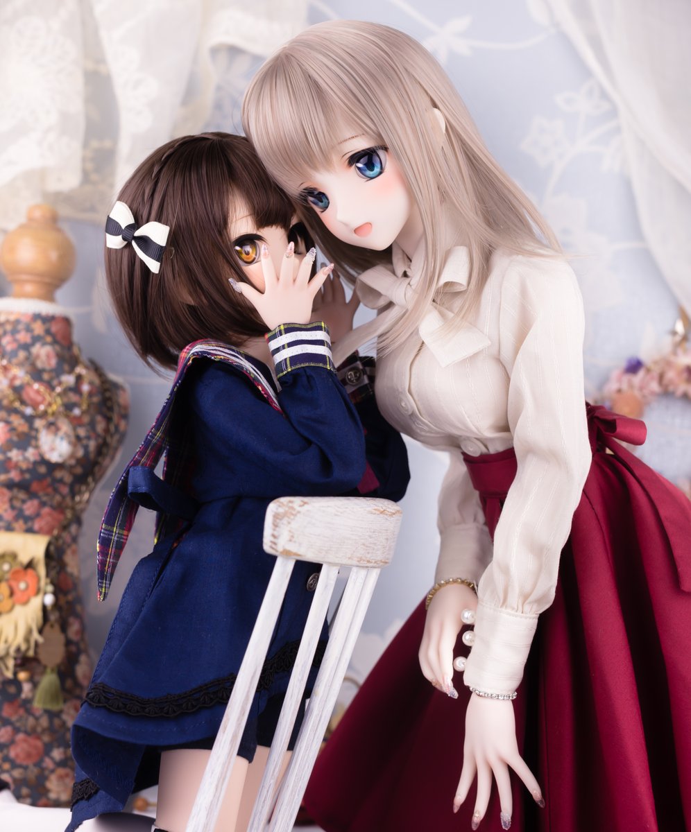 青の花冠のお姉さん〜🌸 白のブラウスとスカートは関口妙子様著Dollfie Dream® sewing bookの型紙から、裁縫得意な母が縫ってくれました😍 #dropparts #Kaleidoll #crystalof