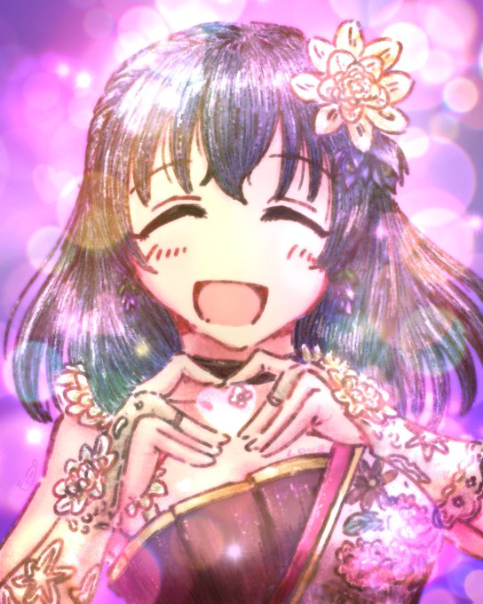 #cgよまつり_day2 にて「Yes! Party Time!!(和太鼓アレンジ)」を歌う八神マキノちゃんを描きました。 「ちゃんと見てるよ」の仕草がとてもかわいかったです! コールすごかったですね!!最高でした! #八神マキノ