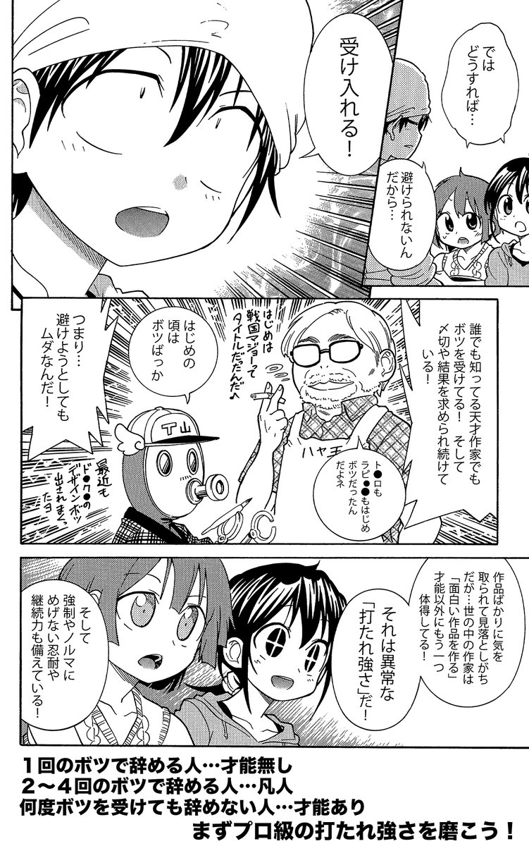 好きな事を仕事にしようとしてる人に訪れる3つの苦難の話(3/3) まず早急に体得しなければならない能力は「面白い作品を作る」ではなく 「打たれ強さ」です