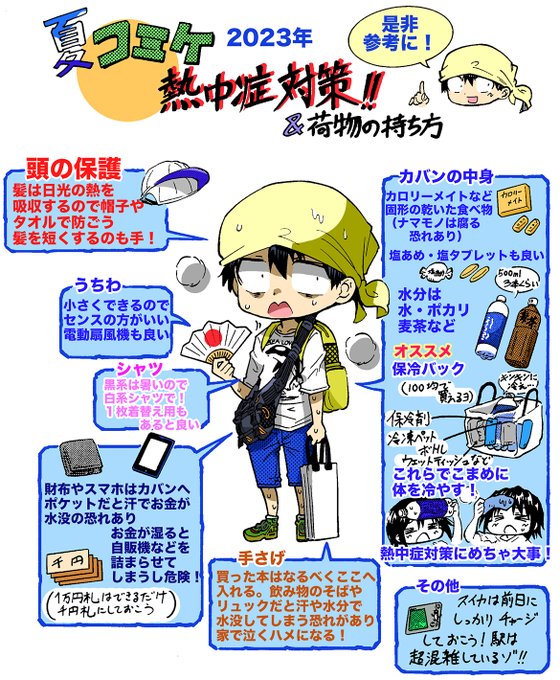 149 188 明日からコミケですので参加の方は熱中症にはくれぐれも気をつけてください! 熱中症対策とちょっとした豆知識を載せときます! 初参加の方はぜひ参考にしてください! ご武運を!! 23/08/11 11:57