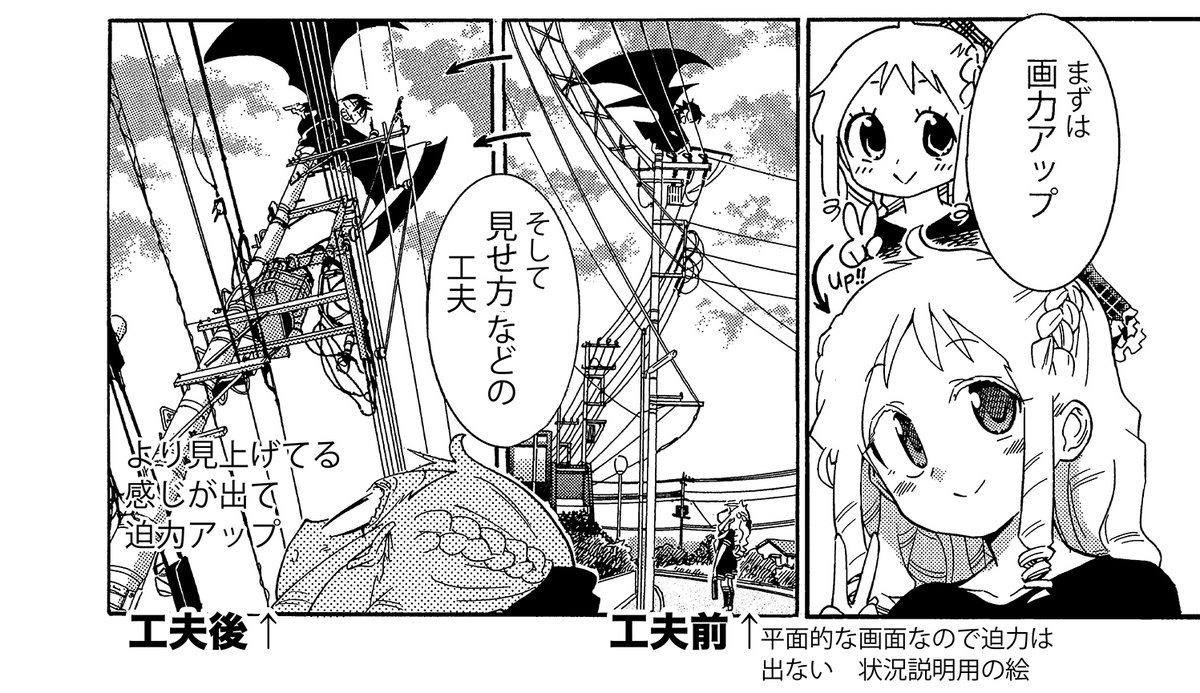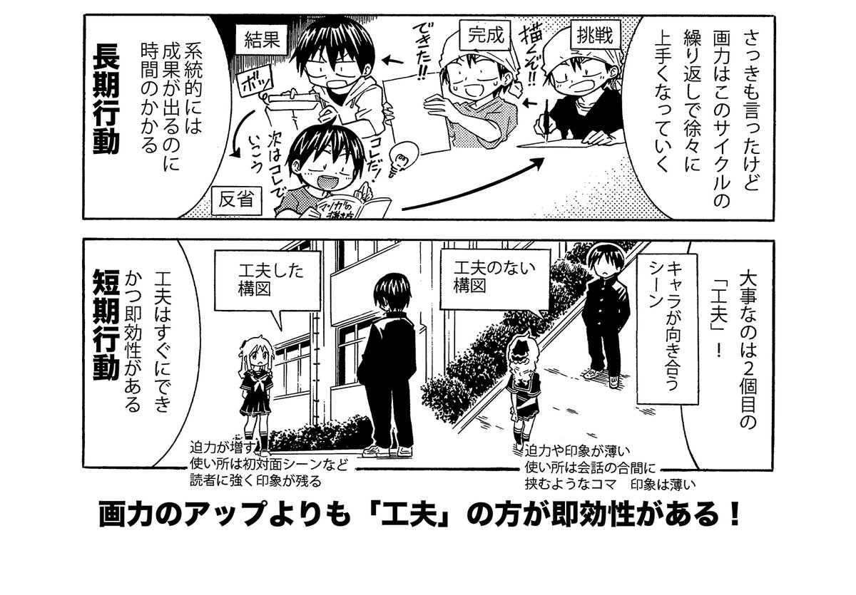いくら描いても絵が上手くならない人へ(2/4) 絵や漫画を良くする要素は 「画力アップ」と「工夫」です 実は工夫の方が即効性があります