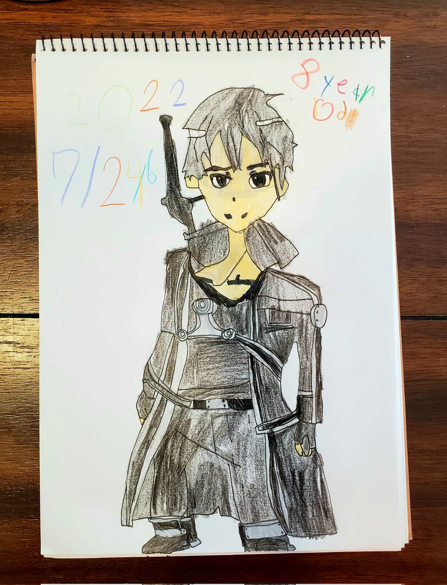 次男8歳がtwitterに載せてくれとしっつこいので、置いておきます笑 ゲームのキャラだそうです😊 「顔を描くのが難しかったけど服を描くのが楽しかった」だそうです😊笑 #絵描きさんと繋がりたい #イラスト #色鉛筆