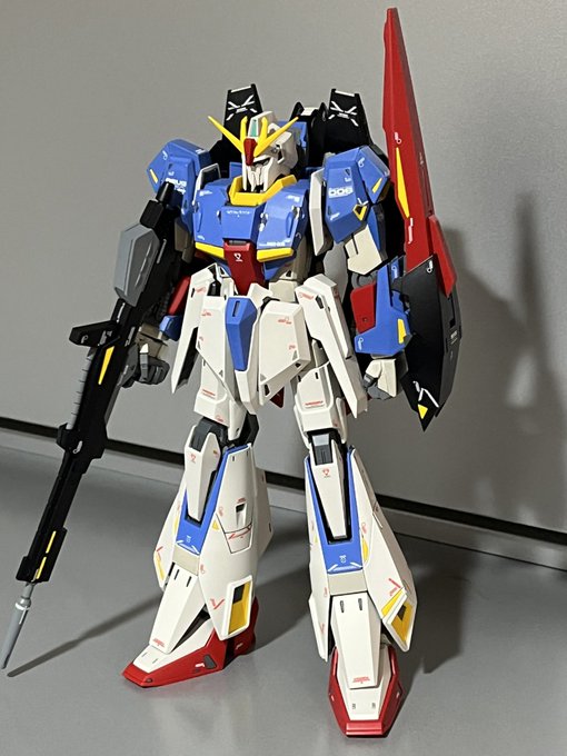 Zガンダムver.Ka 完成しました☺️✨ カッコイイ‼️しっかりしてて、密度感あります! うでが短い気が🖐️ライフルを脇にかかえられるかどうか😅 グレーっぽい白と、ライトグレー、MSブルーで塗ってみました。バインダーはダークブルーです。 #ガンプラ #ガンプラ好きと繋がりたい #zガンダムver.Ka