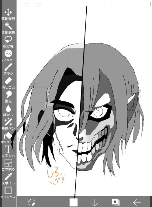 お絵描き、さ、サボってなんて、、、 雑だからモノクロで\(^o^)/ぇ。 #rkgk #エレン巨人