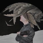 14 109 1000年後の旅人展では 近未来に生きる人の姿を、 心の在処や自意識に思いを馳せ 描きました 「Avatar Material O,ヘッドセット・ハンドクラップ」 2022 22/03/29 12:16