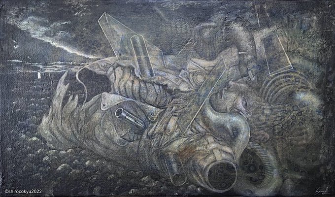 14 105 「Avatar Material 拡声器を用いて、誰にも届かないとして。」 2022 #アクリル画 #1000年後の旅人展 22/03/26 15:25
